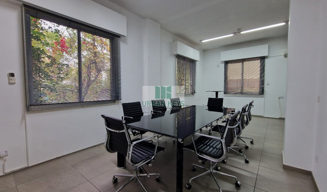Located in the quiet residential area of Ayios Andreas in Nicosia, close to the American Embassy and Courts of Justice, recently renovated ground floor office space, 140 sq. metres, with independent entrance, open plan spacious reception area, 3 offices, kitchenette, 2 storerooms, WC, central heating and A/C .